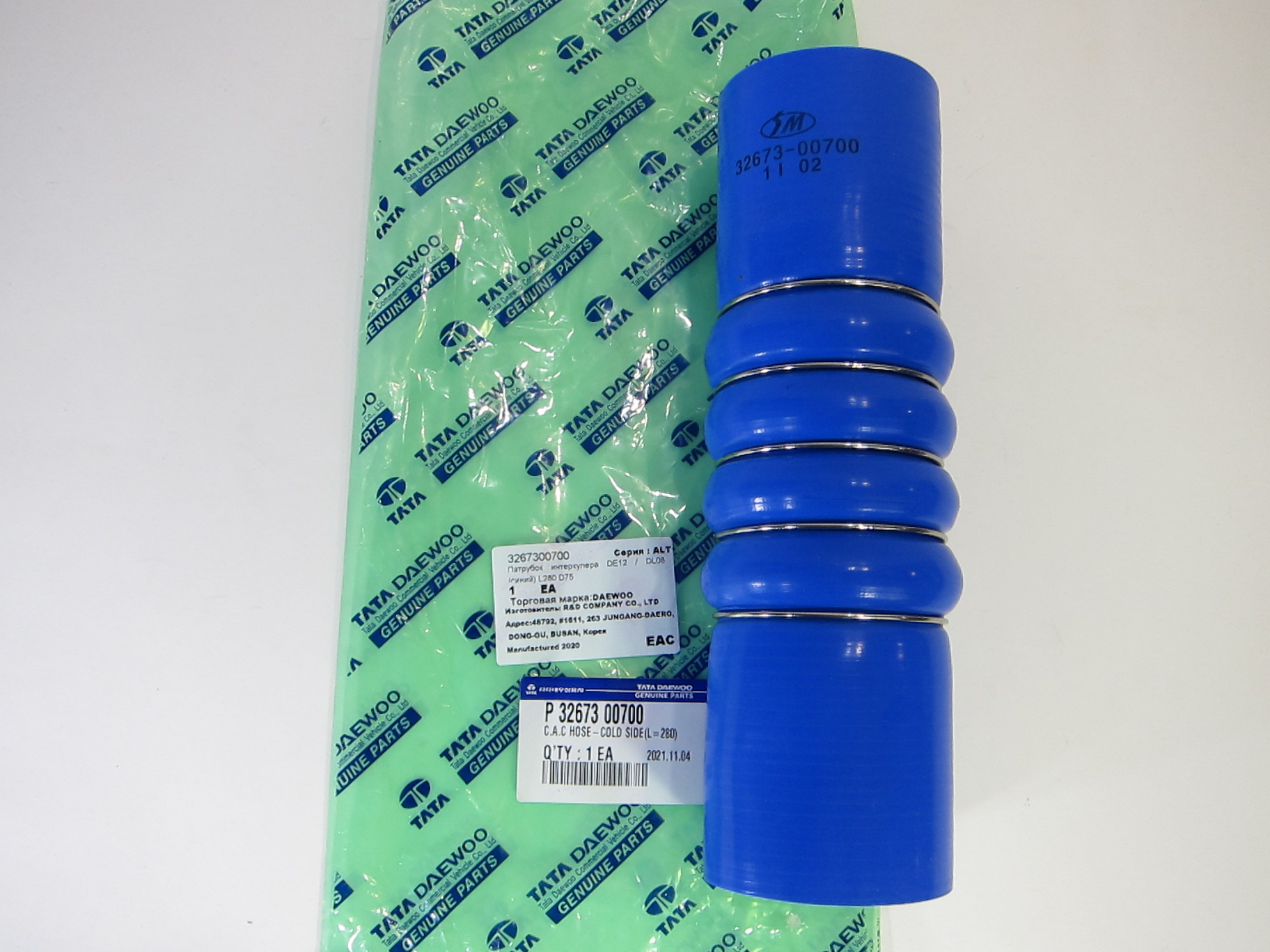 Daewoo Патрубок интеркулера DE12 / DL08 (оранжевый) L280 D75 |
